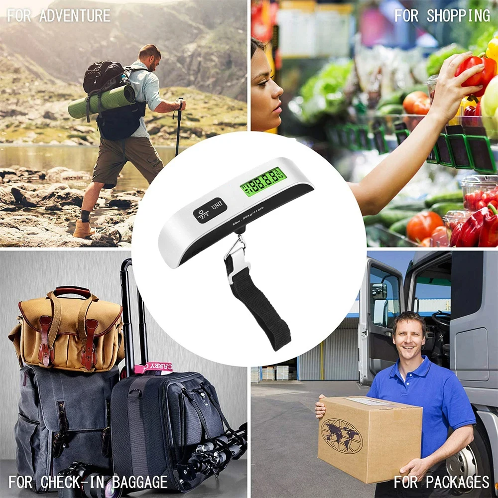 – The Portable Scale with Digital LCD Display accurately measures luggage up to 110lb/50kg. Compact and lightweight, it’s perfect for travelers to weigh baggage easily and avoid overweight fees.